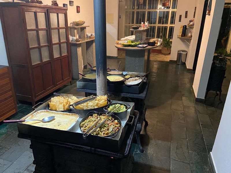 Restaurante com comida caseira feita com muito carinho em fogão a lenha, e servida no sistema self-service em panelas de ferro, incluso sobremesas caseiras típicas do interior.